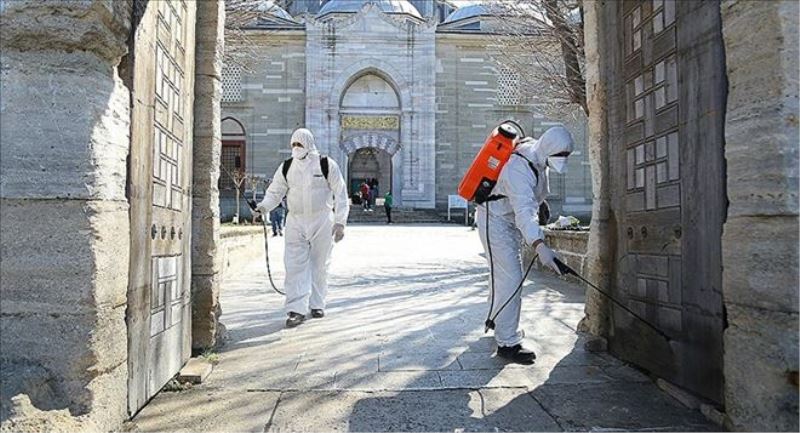Cami ve mescit girişlerinde ve cami/ibadet alanı olarak belirlenen yerlere girecek herkesin ellerini mutlaka dezenfekte etmesi sağlanacak.