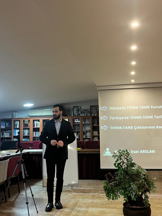 Açılış oturumunda E.Gazi Tuğgeneral Prof. Dr. Esat ARSLAN ve Gençlik Merkezi Başkanımız Çağrı Batuhan BUDAK tarafından “Dünya’da ve Türkiye’de THINK-TANK kuruluşlarının tarihsel gelişimi, çalışma yöntemleri, karar alma süreçlerine katkıları” konuşuldu.