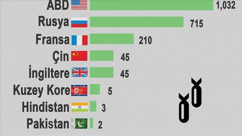 İkinci dünya savaşından bu yana en fazla nükleer deneme gerçekleştiren ülkeler sıralamasında ABD açık ara önde.